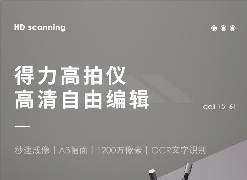 得力15161高拍儀1200萬(wàn)像素高清A3辦公文件PDF文檔證件發(fā)票拍照掃描機視頻錄制掃描儀