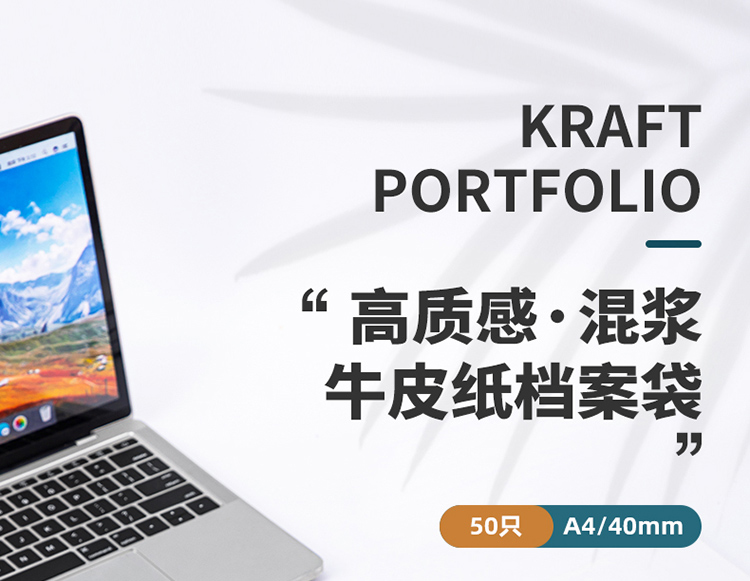 得力(deli)50只A4牛皮紙檔案袋 175g側寬4cm 標書(shū)合同文件資料袋 33474