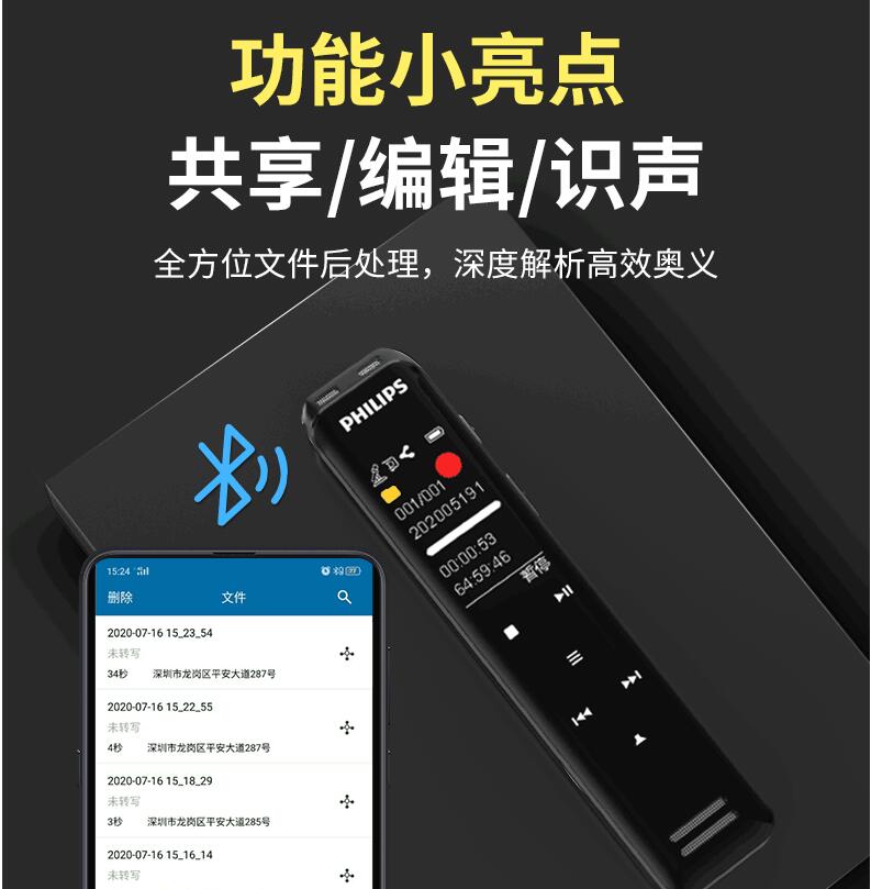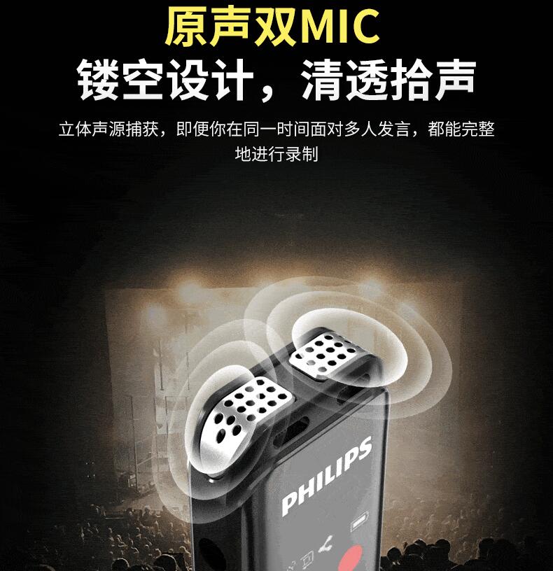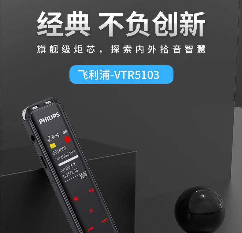 飛利浦VTR5103 Ai智能錄音筆轉文字翻譯專(zhuān)業(yè)高清降噪小型超長(cháng)待機