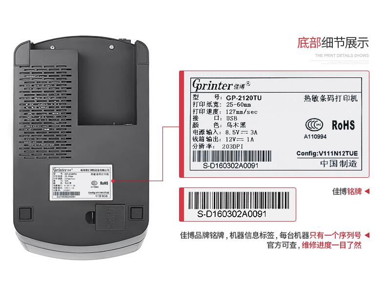 佳博GP2120TU熱敏打印機不干膠三防貼紙手機服裝吊牌貨架條碼藍牙二維碼奶茶超市面包食品價(jià)格倉庫標簽打印機