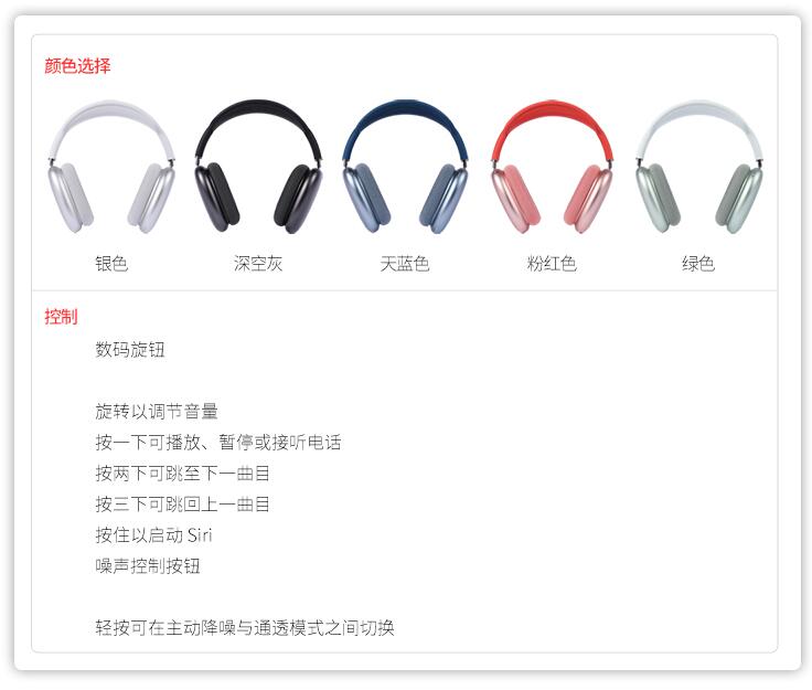 Apple/蘋(píng)果 AirPods Max 無(wú)線(xiàn)藍牙耳機 airpodsmax 頭戴式降噪